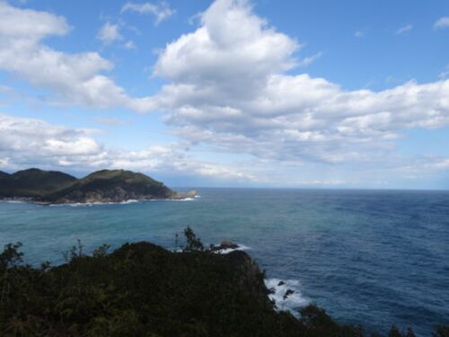 昨日の午後から天気は大荒れ、昼頃やっと天候も回復し晴れ間も見えてきたので、城山遊歩道へ花見に出かけました。 波はまだ高いです。