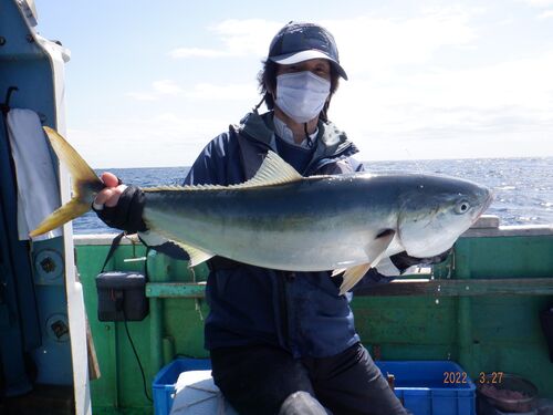 (釣り日記) 天気:晴れ時々くもり(北~北東の風強く)波2.5m→2mうねり伴う 気温:あさ8℃~昼18℃ 水温:13.8~14.1℃(上り潮) 【釣果】 メジロ・70㎝ 3尾 ブリ・90㎝ 1尾 アジ・40㎝ 各20尾くらい 他、チダイ・キダイなど・・・ きょうは、天気も回復し…